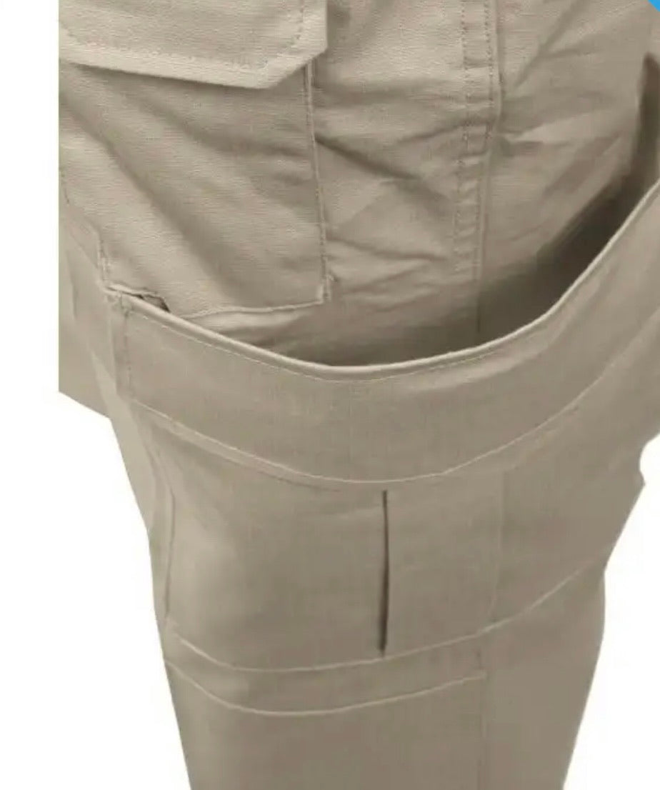 - Two double cargo pockets with open-top slash pockets